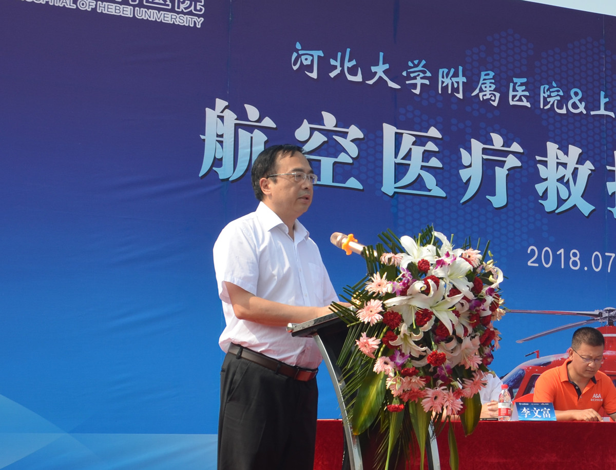 河北大学副校长申世刚在讲话中指出,雄安新区和京津冀协同发展战略以及精准医疗健康基地的建设,为河北大学附属医院提供了医疗服务的机遇。此次医疗航空救援的开启,将为服务雄安新区和京津冀协同发展搭建更高的医疗救援平台,为提高医院医疗服务水平提供有力支撑。同时希望河北大学附属医院依托保定独特的区位优势,抢抓机遇、借势发展,加强与京津地区的医疗合作交流,提升医疗服务水平,提高医疗服务质量。申世刚表示在各位领导的支持下,有各方朋友的关怀帮助,河北大学附属医院的可持续发展之路必将越走越宽。