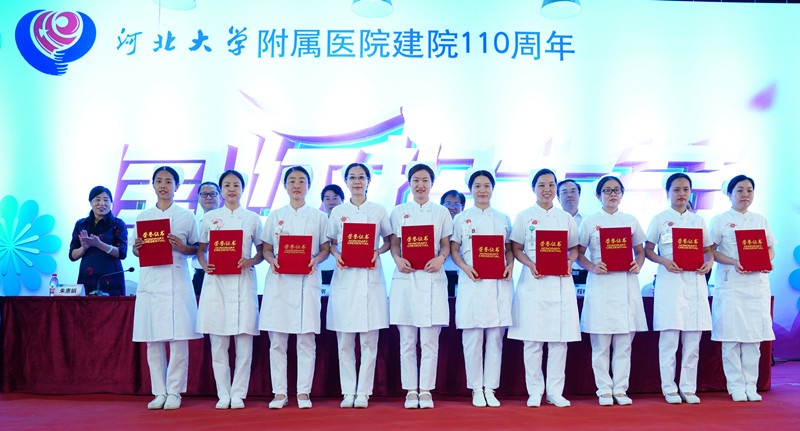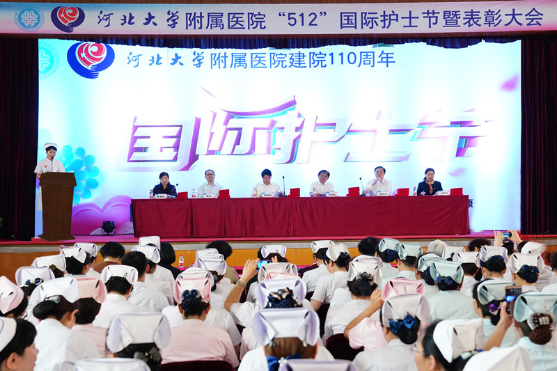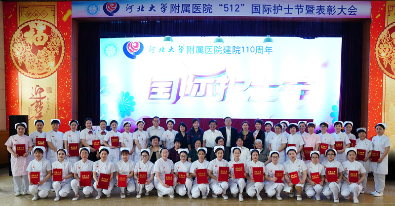 2019年“5.12”国际护士节,恰逢我院建院110周年,对全体护理人员来说,是个值得纪念的日子。为庆祝我院110岁生日,纪念“5.12”国际护士节,弘扬南丁格尔“燃烧自己照亮别人”的奉献精神,表彰医院护理队伍先进集体和优秀个人,我院于5月10日下午3点在医院大礼堂召开了纪念“5.12”国际护士节暨表彰大会,大会由护理部主任齐新荣主持。河北大学副校长、医院党委书记申世刚,院长张海松,党委副书记陈冰,副院长程树杰,副院长朱惠娟,纪委书记赵燕玲出席大会。医院老领导、护理老前辈、职能处室负责人及护理人员代表等200余人参加了会议。
