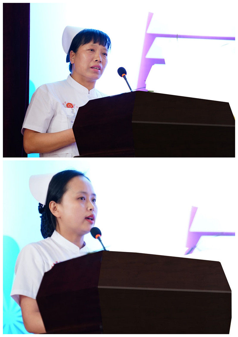 由齐新荣宣读表彰名单,对进入河北省外科护理技能竞赛团体第三名的人员、2018年全年值夜班90天以上的“夜班先锋”、赛道式技能竞赛获奖团队和基本理论知识竞赛获奖个人,以及在2018~2019年度各项护理竞赛活动中取得优异成绩的护理人员进行表彰,院领导对获奖人员颁发了荣誉证书。护士代表放射治疗科一病区骨干医师古金玲、泌尿外科二病区护师张丽娜从不同的角度就如何做一名优秀护士进行了激情发言,使在座的护士倍受感动与鼓舞,把大会推向了高潮。